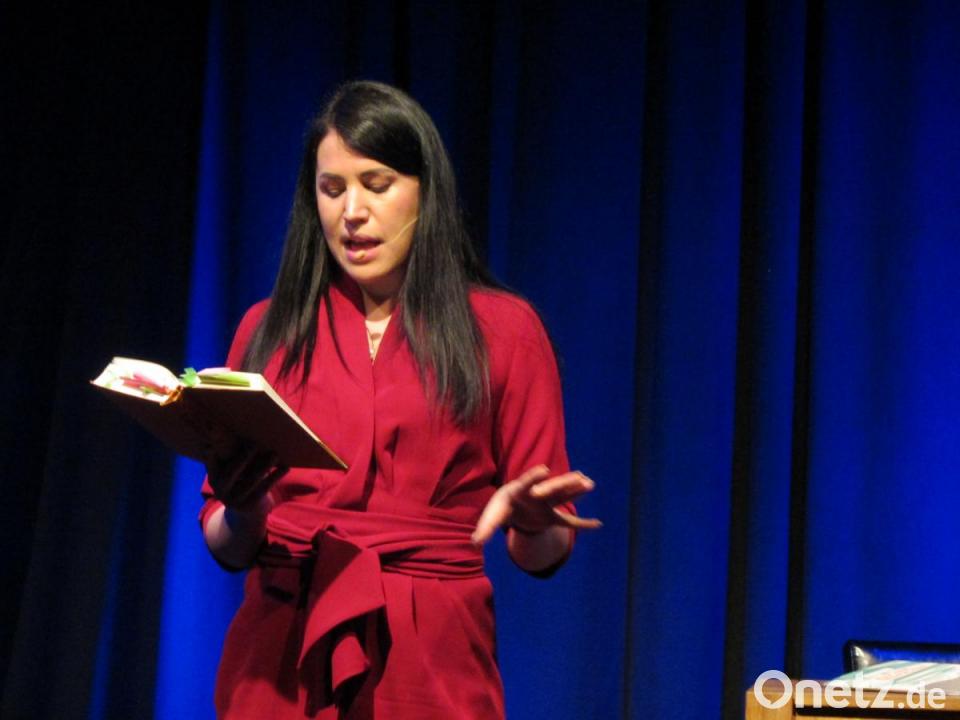 Stuhl und Tisch auf der Capitol-Bühne bleiben nur ungenutzte Requisite – Vea Kaisers sprudelnde Energie braucht Bewegungsfreiheit. Aber auch das bemerkenswert zahlreich erschienene Publikum benötigt mehr Platz als geplant und so zog man vom ursprünglich angedachten kleinformatigen Foyer in den angrenzenden Saal mit Bühne.