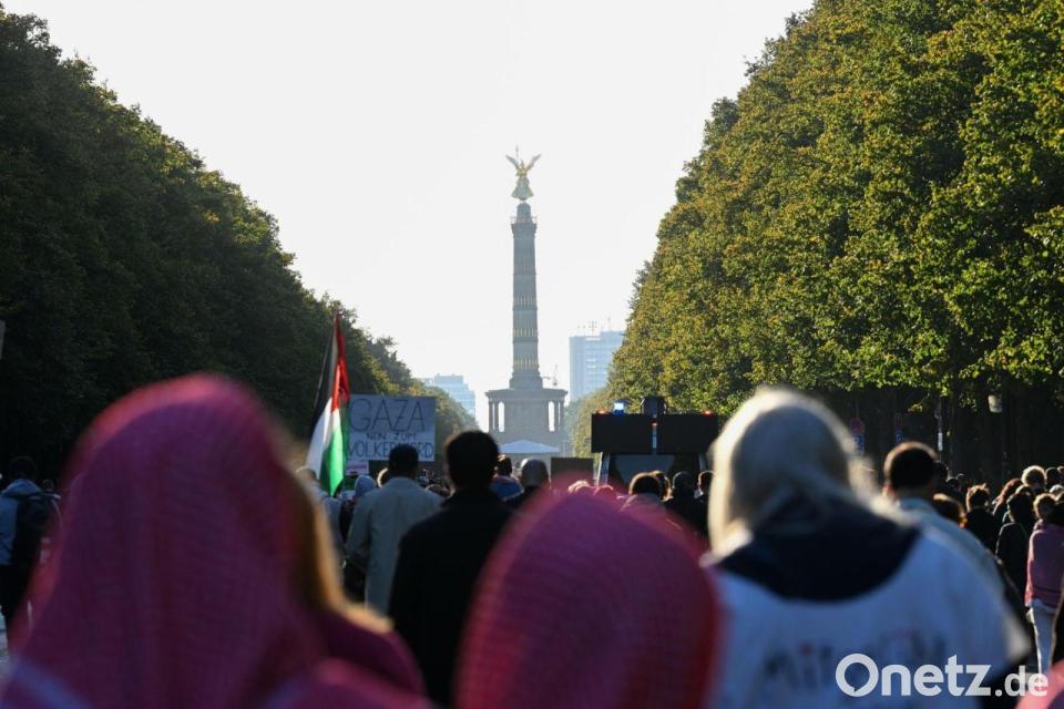 Am Nachmittag waren Zehntausende vom Roten Rathaus in Berlin-Mitte zu einer Kundgebung an der Siegessäule im Tiergarten gezogen. Die Demonstranten forderten unter anderem den sofortigen Stopp deutscher Waffenexporte an Israel, Zugang für humanitäre Hilfe nach Gaza sowie EU-Sanktionen gegen Israel.