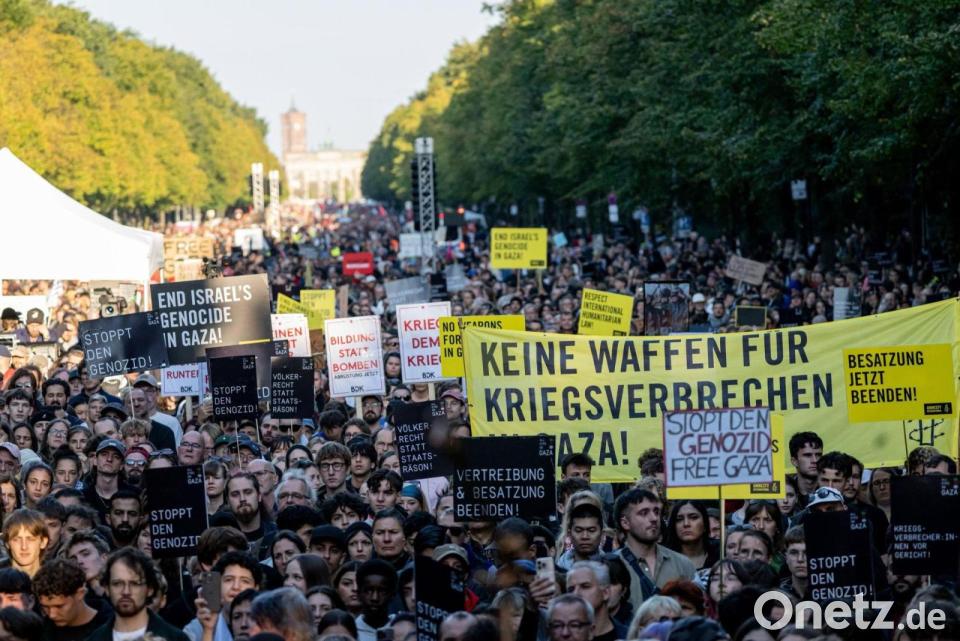 Rund zwei Jahre nach Beginn des Gaza-Kriegs haben sich in Berlin so viele Menschen wie noch nie in Deutschland an Protesten gegen das israelische Vorgehen beteiligt. Die Veranstalter sprachen von mehr als 100.000 Menschen – die Polizei schätzte die Zahl auf etwa 60.000. Beides übertrifft die bis dahin größte deutsche Gaza-Demonstration mit 50.000 Menschen im Sommer in Berlin.