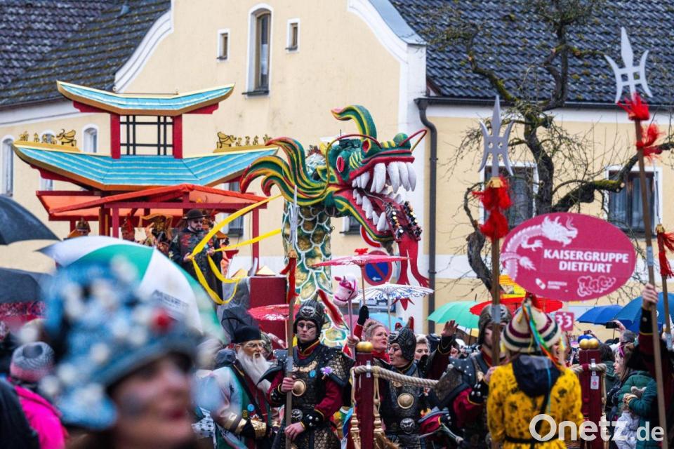 Beim Chinesenfasching in der Oberpfalz haben Tausende Narren und Schaulustige ausgelassen gefeiert. Höhepunkt in DIetfurt an der Altmühl war am Nachmittag der Faschingsumzug mit nach städtischen Angaben 50 Gruppen. Das wechselhafte Wetter trübte die gute Laune der Teilnehmer nicht.