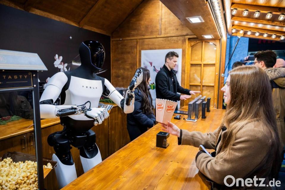 Tesla hat seinen humanoiden Roboter mit dem Namen Optimus dem Publikum in Berlin vorgeführt. Auf dem Weihnachtsmarkt im Einkaufscenter LP12 gab die Maschine Popcorn aus. Der Roboter griff kleine Popcorn-Boxen, füllte sie auf und überreichte sie den Besuchern. Am Stand bildete sich eine lange Schlange. Wie bei anderen ähnlichen Demonstrationen von Tesla blieb unklar, inwieweit Optimus dabei autonom agierte oder zumindest teilweise ferngesteuert wurde.