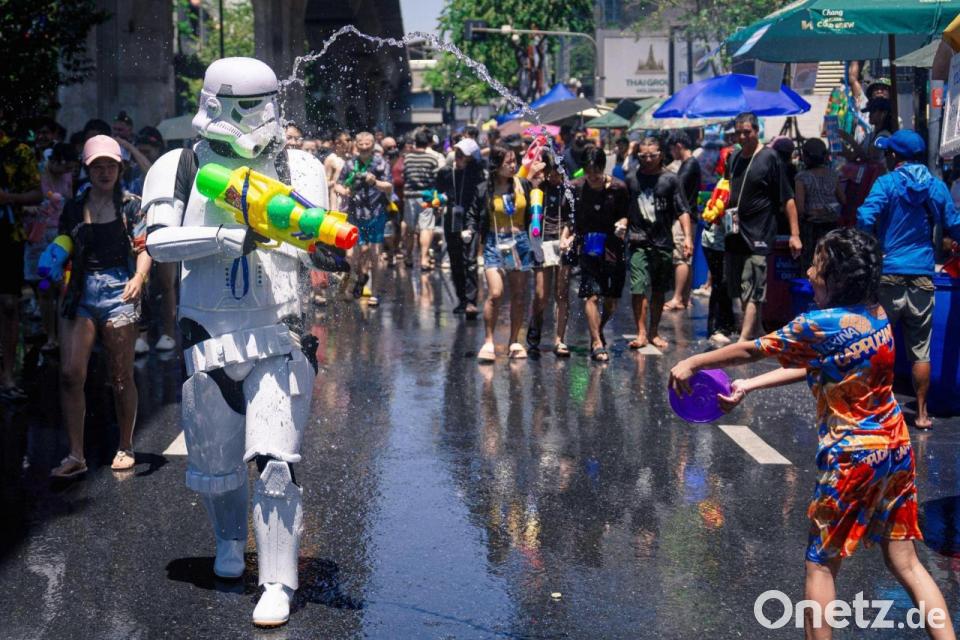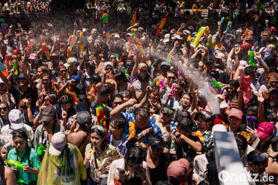 „Wasser marsch“ in Thailand! Mit ausgelassenen Wasserschlachten hat im Königreich das traditionelle Neujahrsfest „Songkran“ begonnen, der wichtigste Feiertag des Jahres. Zwischen dem 13. und 15. April wird es dabei traditionell sehr nass - eine willkommene Abkühlung bei Temperaturen von fast 40 Grad. Viele Teilnehmer waren schon nach wenigen Minuten von Kopf bis Fuß klatschnass - dazu ertönte aus Lautsprechern ohrenbetäubende Partymusik.