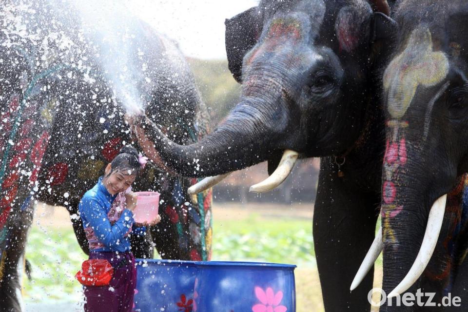 In der ehemaligen Hauptstadt Ayutthaya, etwa 80 Kilometer von Bangkok entfernt, beteiligen sich derweil traditionell auch Elefanten an den Wasserschlachten. Die tierische Sause mit den bunt geschmückten Dickhäutern lockt Besucher aus aller Welt.