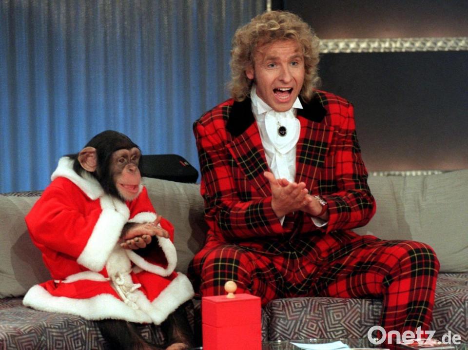 Nicht nur Menschen nahmen auf Gottschalks übergroßer Couch Platz. Aus der langjährigen ZDF-Serie „Unser Charly“ war in der „Wetten, dass..?-Weihnachtsausgabe 1996 etwa ein Schimpanse zu Gast.