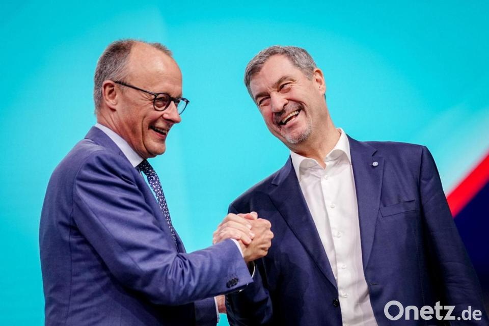 CSU-Chef Markus Söder demonstrierte bei seinem Besuch beim Parteitag Einigkeit mit dem gerade wiedergewählten CDU-Chef Friedrich Merz. Obwohl es kein Selbstläufer gewesen sei, habe er mit Merz „vom ersten Tag an ein enges, ein tiefes, ein gutes Miteinander“ gehabt. „Du kannst dich auf uns verlassen. Wir unterstützen dich als Kanzler, gerne auch länger, wenn du willst“, versprach er dem Kanzler.