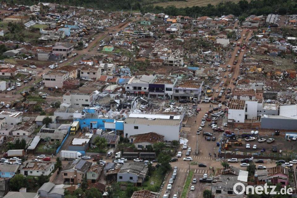 Drohnenaufnahmen zeigten ganze Stadtteile in Trümmern. „Der Tornado dauerte 30, 40 Sekunden und zerstörte alles. Ich habe zwei Autos, eines davon wurde zehn Meter weit weggeschleudert. Es sah aus, als hätte man eine Atombombe gezündet“, schilderte ein Anwohner die Szenen im Sender TV Globo.