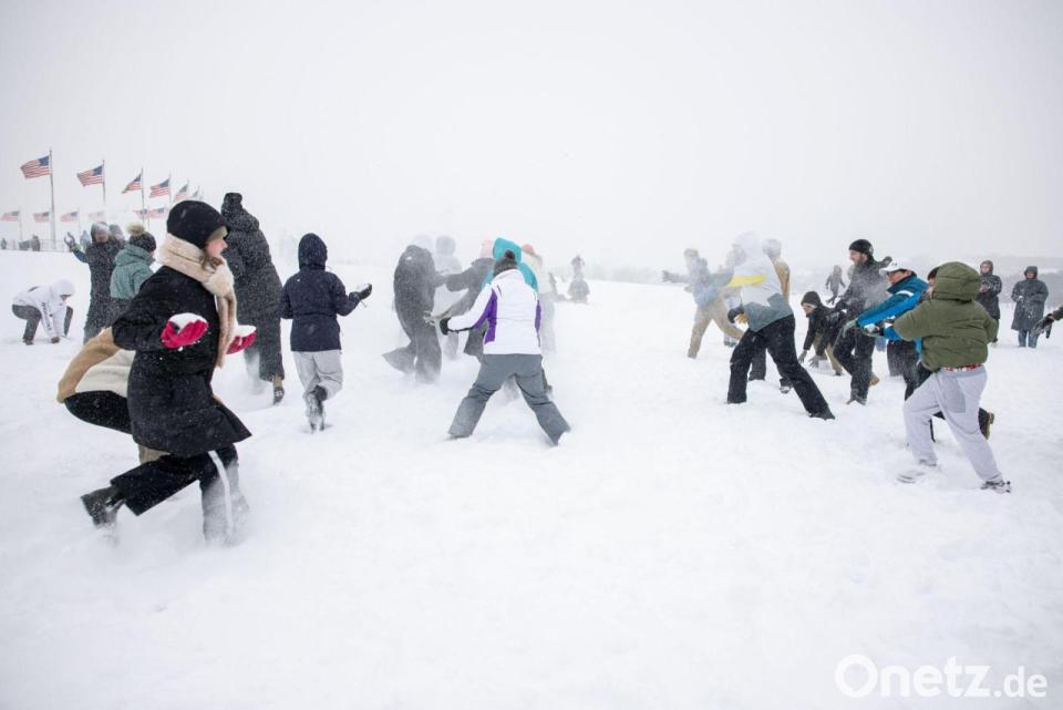 Trotz der angespannten Lage prägten am Sonntag auch fröhliche Winterszenen das Stadtbild: Mitten in Washington rodelten Kinder die verschneiten Hänge des Kapitols hinunter, Passanten stiegen auf Skier um.