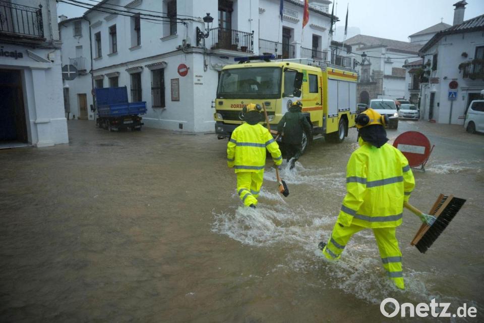 Im spanischen Andalusien ordneten die Behörden die Evakuierung einer gesamten Kleinstadt an. Binnen einer Woche seien in der Stadt Grazalema 800 Liter Regen pro Quadratmeter niedergegangen. Angesichts des mit Wasser gesättigten Erdreichs könne die Stabilität von Mauern und Abhängen in dem Ort nicht mehr garantiert werden, berichtete der staatliche spanische TV-Sender RTVE.