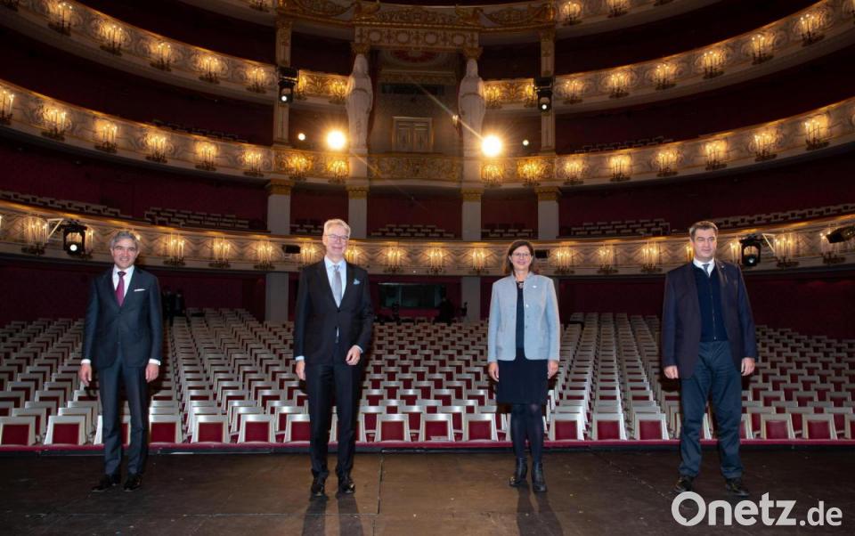 In einer Gesprächsrunde loben anschließend Aigner, Söder und Heßler das 75 Jahre alte Werk. Die auf diesem fußende Demokratie habe den "Stresstest der Pandemie bestanden", urteilt Söder. Aigner hält die dort verankerten Rechte, Pflichten und Werte auch heute noch für "unheimlich aktuell". Die Bayerische Verfassung biete eine "hervorragende Grundlage für unser Zusammenleben", sagt sie. Dazu brauche es aber möglichst viele Menschen, die das auch mit Leben erfüllten. Wie das ist, wenn keine Menschen da sind und sich beteiligen dürfen, konnten die vier Teilnehmer in der tristen Atmosphäre des leeren Nationaltheaters hautnah erleben.