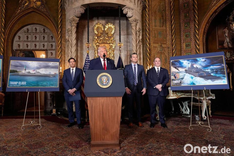US-Präsident Donald Trump hat den Bau von zwei neuen Kampfschiffen für die Marine angekündigt. Die Baureihe soll seinen Namen tragen: Die Schlachtschiffe der „Trump Class“ (Trump-Klasse) würden länger, schneller, größer und „100 Mal“ schlagkräftiger und damit dann die größten Schlachtschiffe der Welt sein, sagte der Republikaner im Beisein von Pentagon-Chef Pete Hegseth, Außenminister Marco Rubio und den für die Navy zuständigen Staatssekretär John Phelan. Man starte mit den beiden Schiffen, nach und nach soll deren Zahl auf bis zu 25 aufgestockt werden, stellte Trump in Aussicht.