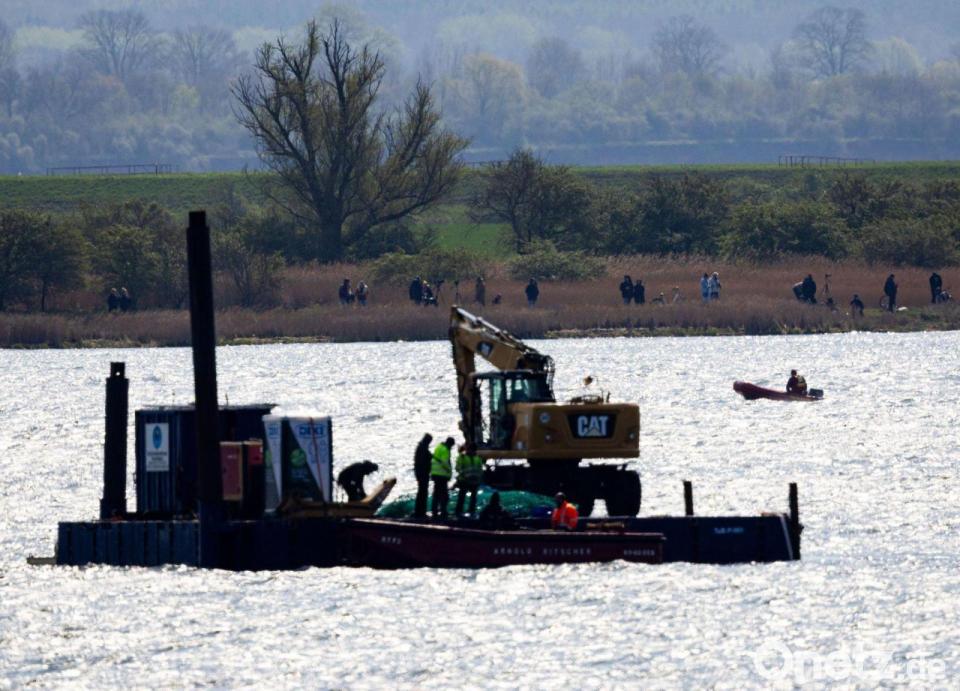 Aus Kreisen der privaten Initiative, die hinter dem Rettungsversuch steht, hieß es, durch den Einsatz von Saugrobotern sei eine Kuhle geschaffen worden. Eine Seite des Wals werde blockiert. Ziel sei es, das Tier später in tiefere Gewässer zu leiten, „raus aus dem Nadelöhr“.