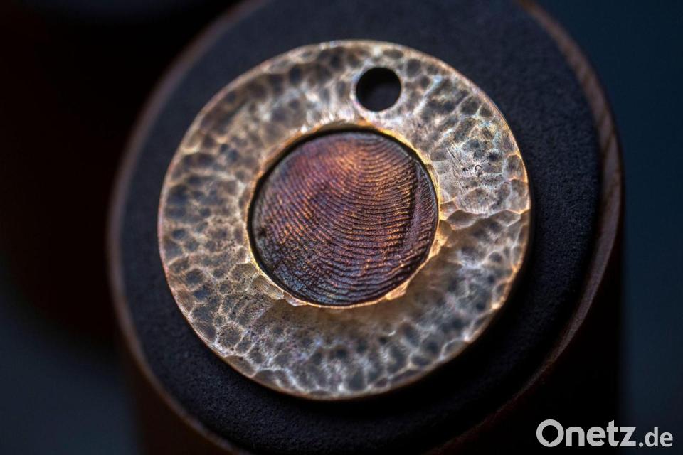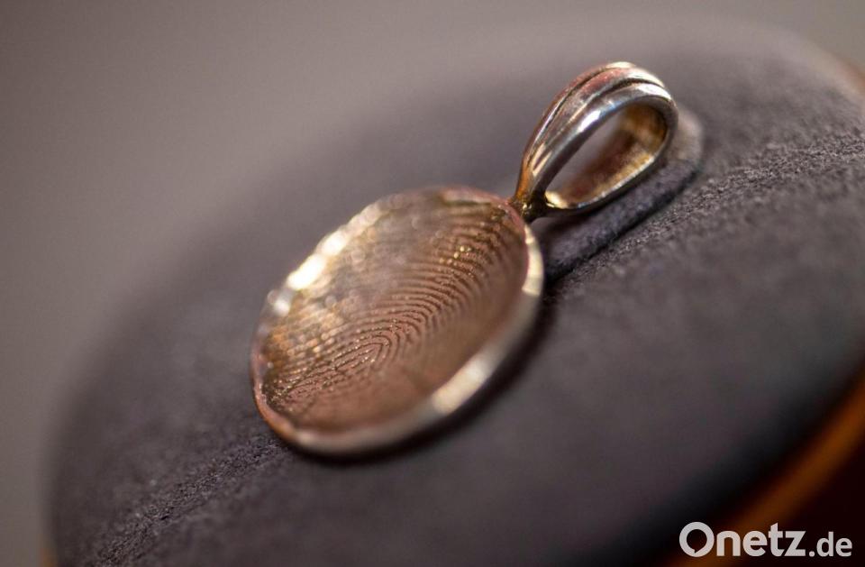 Was oft vorkomme, sei Schmuckstücke mit dem Fingerabdruck des Verstorbenen anfertigen zu lassen, sagt Schmidt. Man nehme den Abdruck in Spezialwachs. Es gebe Hersteller, die gravierten die Abdrücke dann entweder in neue Schmuckstücke oder in Schmuck, den man schon habe.