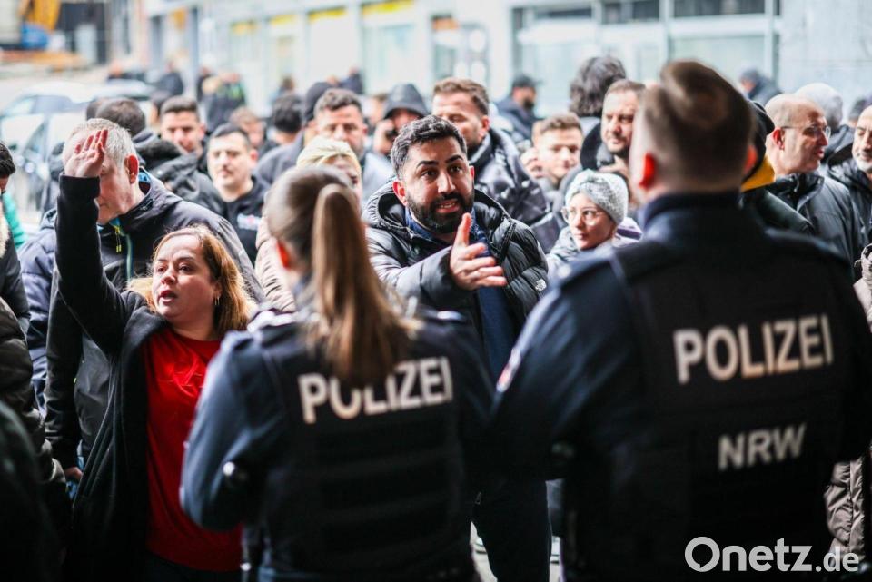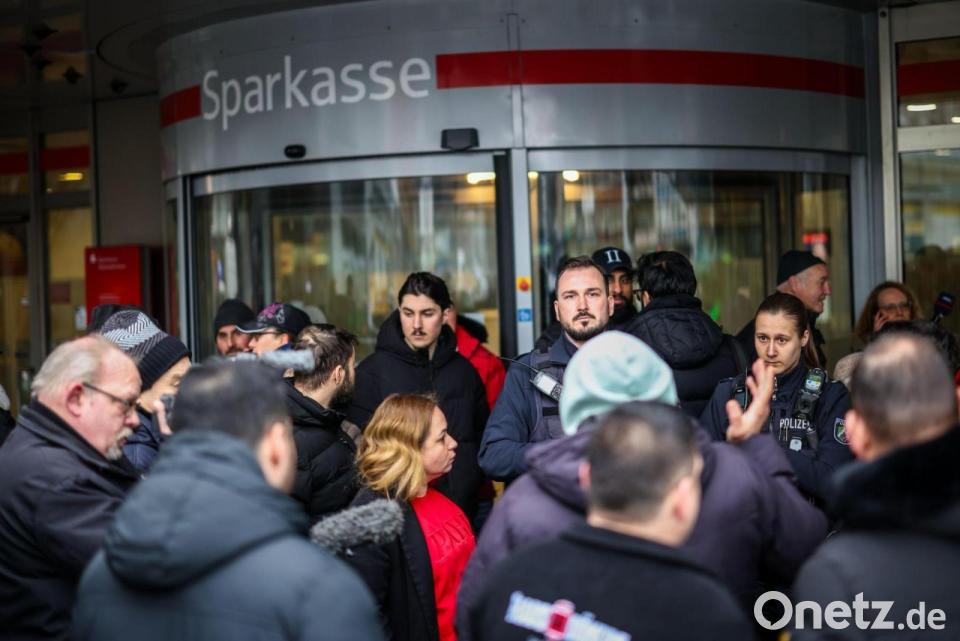 Der Andrang war schließlich so groß, dass Polizisten anrückten und den Vorraum der Bank räumten. Einige Menschen waren aufgebracht. Es folgten immer wieder Lautsprecherdurchsagen der Polizei, um die Situation zu beruhigen. Eine Polizistin erklärte den versammelten Menschen, dass die Sparkasse in den nächsten Tagen proaktiv auf die Kunden zukommen werde. Dies könnte mehrere Tage dauern, nachdem die Spurensicherung beendet ist.
