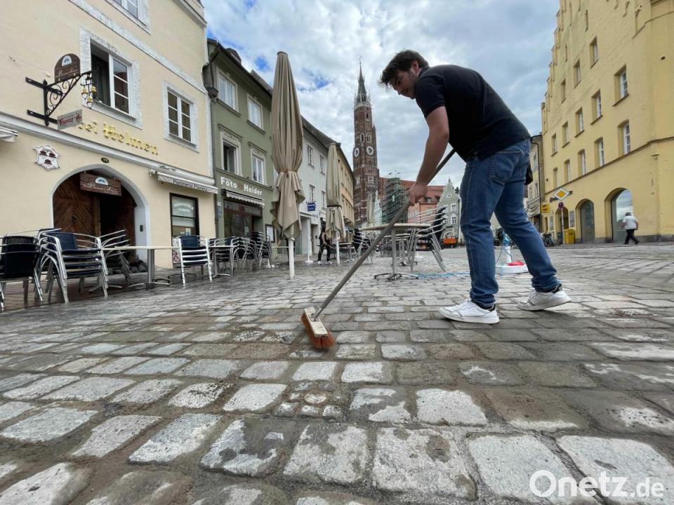 Die Stadt Landshut spricht von einem „hundertjährlichen Ereignis“. Innerhalb von nur einer halben Stunde seien 57 Liter Niederschlag pro Quadratmeter gefallen. „Wir haben Wildbäche gehabt, wo sonst Straßen sind“, sagte Oberbürgermeister Alexander Putz dem Bayerischen Rundfunk (BR). Unvorstellbare Wassermassen seien die Hänge rings um die Stadt heruntergekommen. Nach Auskunft der Feuerwehr rissen die Fluten Autos mit und spülten große Mengen an Schlamm auf die Straßen und in die Häuser. Viele Menschen waren am Morgen damit beschäftigt, die Schäden zu beseitigen, aus Privathäusern ebenso wie aus Geschäften oder Restaurants. Bei einigen gehe es wohl um die Existenz, vermutete Zehatschek.
