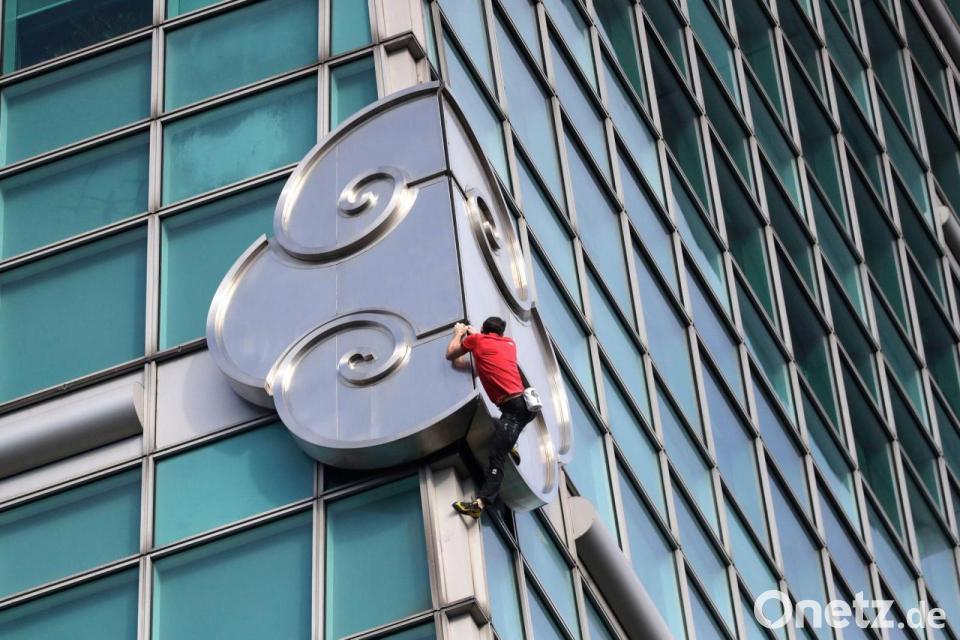 Auf der 60. Etage waren sie sich bereits begegnet - sie drinnen mit dem Daumen nach oben, er außen an der Fassade. Auch sonst verfolgten Schaulustige den Aufstieg hinter den Glasfassaden der Bürofenster. Nicht wenige hielten die Momente mit dem Smartphone fest, andere bunte Plakate mit Durchhalteparolen hoch.