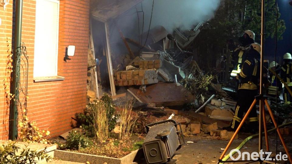 Auch die angrenzenden Reihenhäuser sind laut Polizei vorerst nicht mehr bewohnbar. Die beiden Häuser direkt neben dem eingestürzten Reihenhaus seien einsturzgefährdet. Rund 140 Feuerwehrleute sind seit dem Abend im Einsatz. Auch das THW unterstützt die Rettungsarbeiten. Mit der Hilfe eines Baggers und eines Krans trugen die Helfer die Trümmer des eingestürzten Hauses vorsichtig ab.
