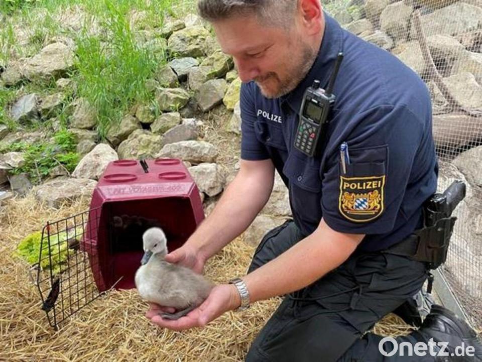 Vier Schwanenküken sind aus einer Notlage an einer Bamberger Wehranlage von Einsatzkräften gerettet worden. Eine Passantin meldete die elternlosen Küken, die am Montag in Gefahr waren, in die Anlage an der Regnitz gesogen zu werden, wie die Polizei am Dienstag berichtete. Möglicherweise waren die Altschwäne bereits hineingesogen worden, vermuten die Ermittler. Die vier Küken wurden ans Ufer gelockt und in ein Tierheim gebracht.