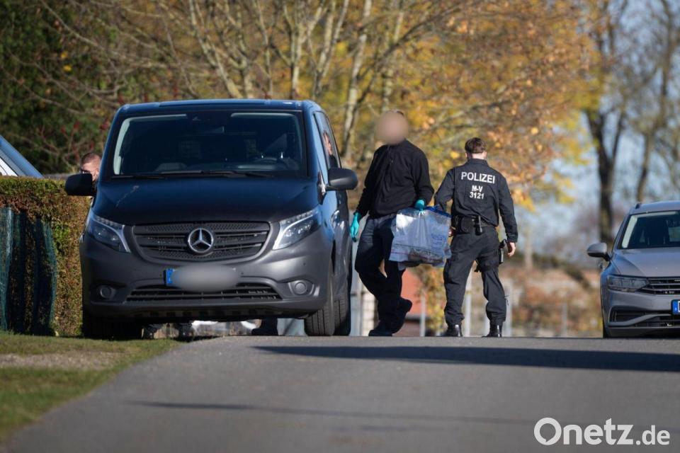 Am frühen Donnerstagmorgen, ab 6.00 Uhr, durchsuchten 120 Polizeibeamte mehrere Objekte in der Region. Dabei habe es sich um Objekte mehrerer Personen in Reimershagen im Landkreis Rostock sowie um ein Objekt im benachbarten Rum Kogel gehandelt, sagte eine Polizeisprecherin. Bei den zehn Stunden währenden Durchsuchungen wurden unter anderem drei Fahrzeuge sichergestellt, wie es am Nachmittag hieß. Auch trugen Ermittler Sportschuhe in Plastiktüten aus einem Wohnhaus in Reimershagen.