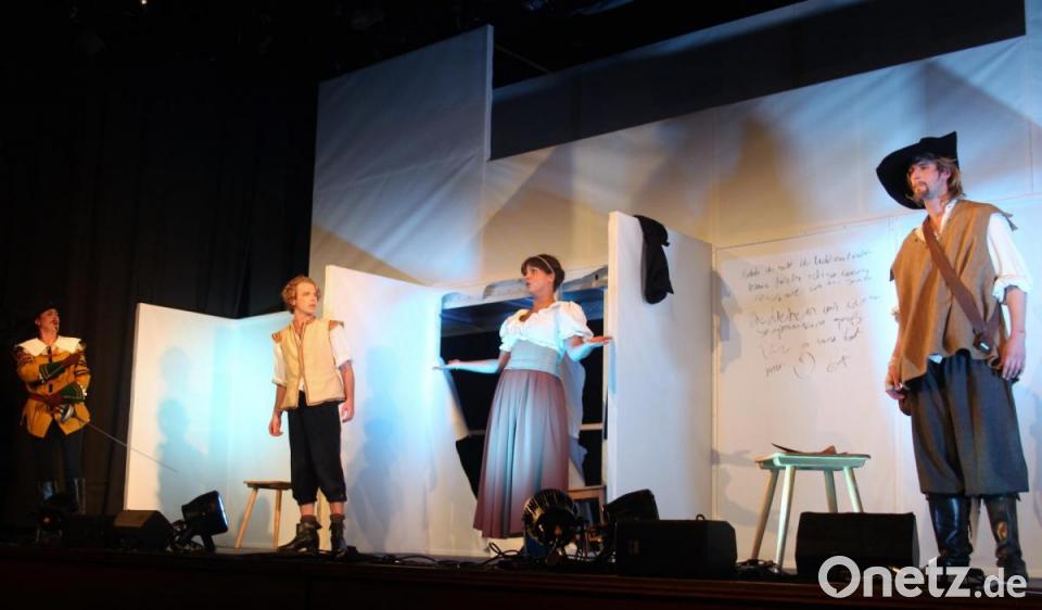 Kulturgenuss mit Abstand und Hygiene haben die Verantwortlichen vom Landestheater Oberpfalz (LTO) für den von Corona geprägten „Kulturherbst“ in der Stadthalle Vohenstrauß versprochen. Und sie haben Wort gehalten am Donnerstagabend bei der Premiere des Schauspiels „Cyrano de Bergerac“ von Edmond Rostand, in einer Bearbeitung von Jo Roets und Greet Vissers. Künstlerischer Leiter Till Rickelt hat mit den vier Schauspielern Johannes Lukas, Mona Fischer, Ole Bosse und Claudia Lohmann eine überzeugende Adaption auf die Bühne gebracht, die für amüsante Unterhaltung und große Gefühle sorgt, aber auch den menschlichen Makel und den Schönheitsfetisch beleuchtet.