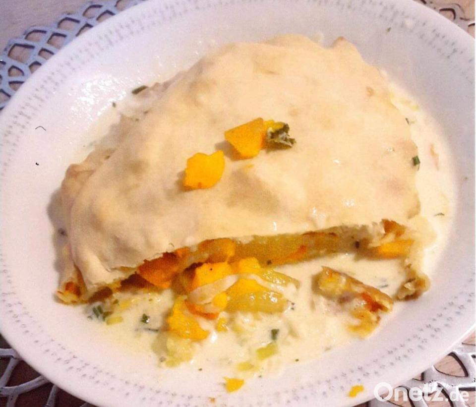 Kürbisstrudel mit Schnittlauch-Rahm-Soße