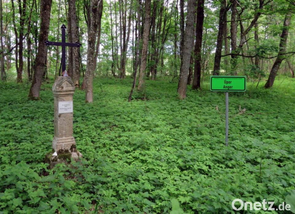 Vorbei am Friedhof führt der Weg zwischen Wiesen einer- und einem Baumstreifen andererseits leicht bergab – nach Anger, von dem nur ein steinernes Marterl und eine Tafel geblieben ist. Gleich nach der Wegbiegung nach rechts gibt es mehrere Möglichkeiten. Ein Radweg führt nach Plöss (Pleš) – auch ein geschleifter Ort. Wäre die Zeit nicht so weit fortgeschritten, würde ein Weg über Höll oder ein weiterer über Wassersuppen (Nemanice) die Tour abrunden. Stattdessen ist ein Bunker das Ziel. Rötzer hat von 13 hier im Umkreis gesprochen, plus Aufenthalts- und Munitionsbunker. Einer muss doch zu finden sein. Und tatsächlich: Auf einer Anhöhe am Rande einer Viehweide befindet sich der gut getarnte Beobachtungsposten mit freier Sicht auf die ehemals westliche Seite und ins Hinterland.