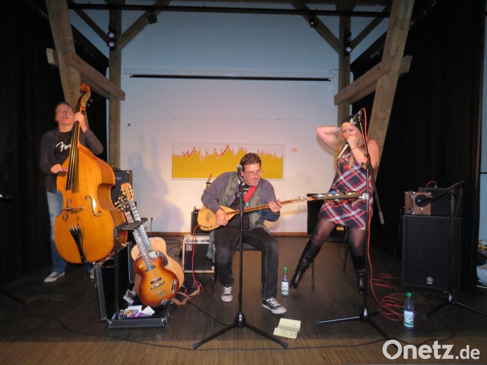 Es sind drei total „Verrückte“, die zum Saisonauftakt des Kunsthauses am Samstag eine Show liefern, die das Blut des Publikums zum Wallen bringt. Da kochen literweise Lebenssäfte, wenn Bernreuther in die Gitarrensaiten greift, Harry Hirschmann den Bass dröhnen lässt und Beata Kossoska die Mundharmonika „geigt“, dass es einem schwindelig wird. Ein Rhythmus, der direkt von den Füßen in den Kopf bis in die Haarspitzen steigt.