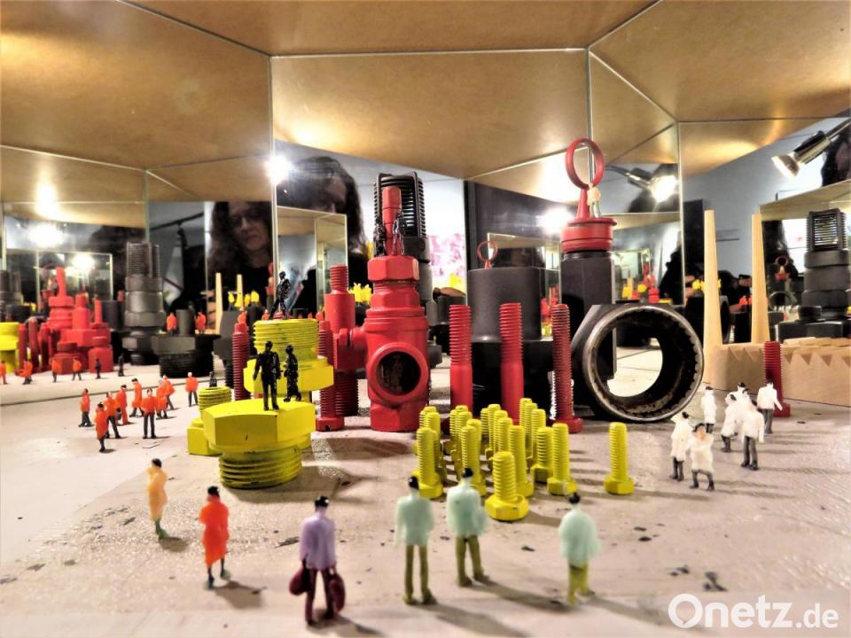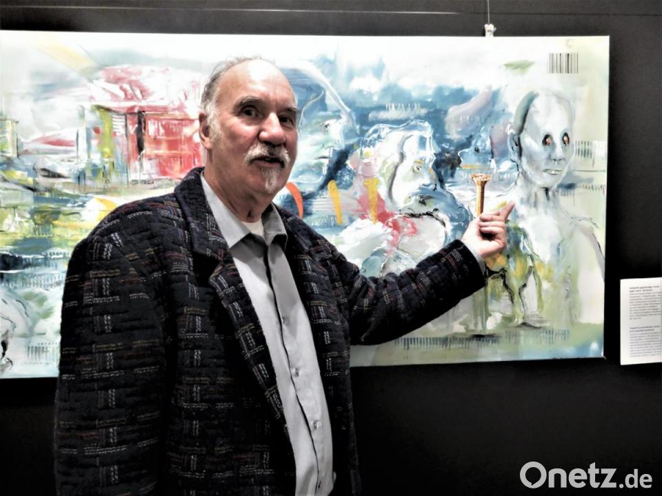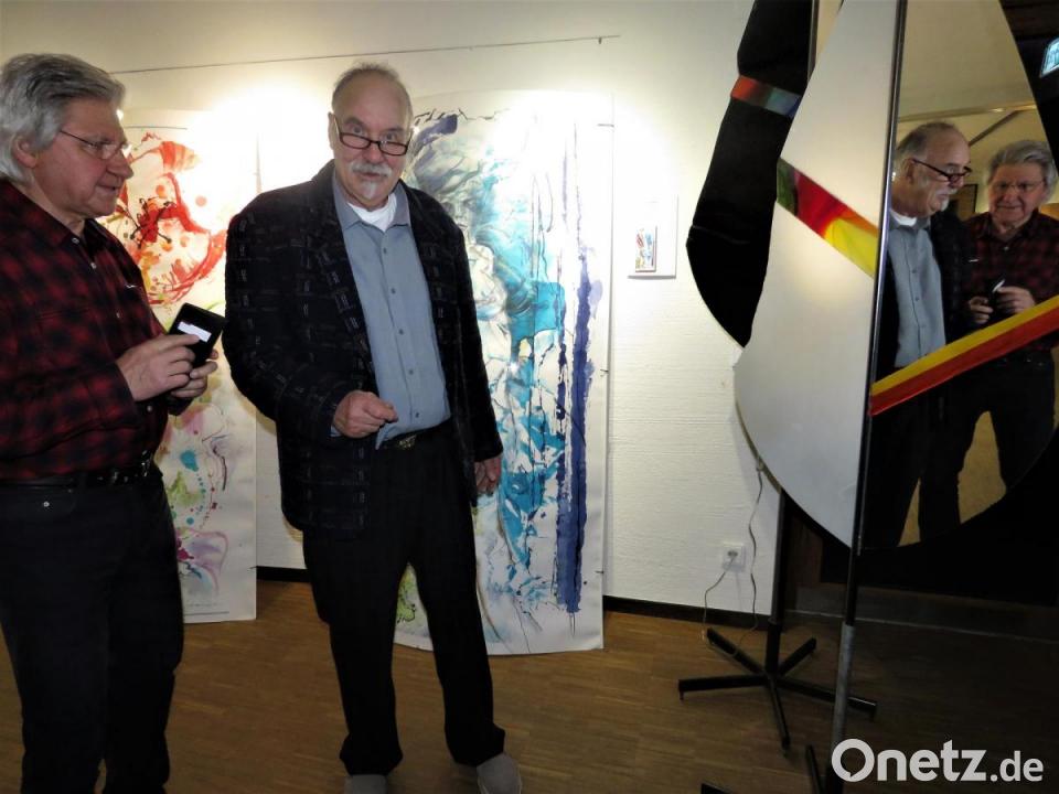 Der heute 72-Jährige schüttelte alle gesellschaftlichen Zwänge von sich ab, um Kunst zu machen, die niemandem gefallen muss. Bertrams Hände schaffen Dinge, die nicht gefällig sein sollen und gewiss nicht beliebig sind. Das Kunsthaus Waldsassen ist voll davon. Die neue Ausstellung mit Titel „Gesellschaftsspiegel eines Grenzgängers“ strotzt vor Malereien und Spielereien zum Nachdenken, Schmunzeln oder Diskutieren. Eine Taschenlampe spielt eine Rolle. Wer Betrams Installationen aus kleinen Buntglaselementen damit beleuchtet oder seinen Kopf weit in eine der räumlichen Arbeiten steckt, sieht Spiegelbilder, die den gewohnten Raum eines normal denkenden Gehirns verlassen. Was ist geistiges Kind, was ist Raum, was ist Illusion? Gibt es überhaupt Illusion? Oder ist alles Wirklichkeit? Bewusst und, sagt der Künstler, baue er Spiegel in seine Arbeiten ein. Sie sollen dem Betrachter nicht schmeicheln. Detlef Bertram will damit hinter die gesellschaftlichen Kulissen schauen lassen.