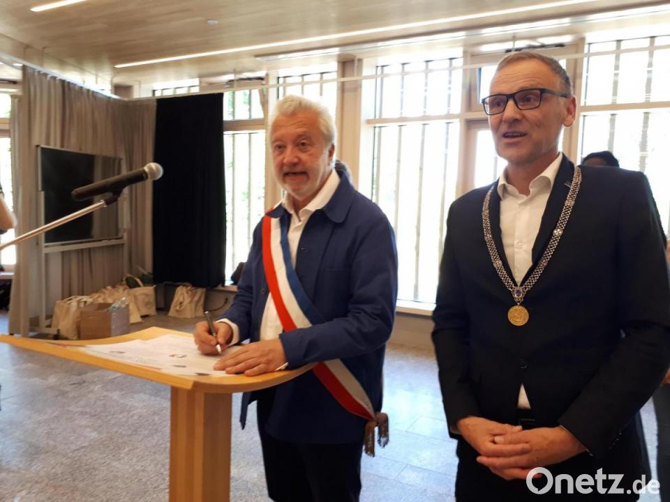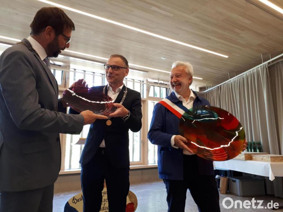 "Der Schwerpunkt soll beim Feiern liegen", erklärte Bürgermeister Bernd Sommer. Er trug seine Rede vor, zusätzlich lag sie in deutscher, französischer und tschechischer Sprache aus. Sommer würdigte den Weitblick der Begründer der Städtepartnerschaft und nannte die damaligen Bürgermeister Franz Fischer und Jean Duboscq. In der Folge hätten dann die Vertreter der Deutsch-Französischen Gesellschaft (DFG) und des Partnerschaftsvereins Amfai in Marcoussis die Freundschaft mit Leben erfüllt.