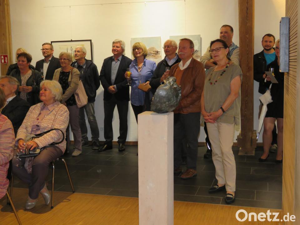 Außergewöhnliche Gäste im Kunsthaus: Die Bewunderer sind Mitglieder des Oberpfälzer Kunstvereins (OKV), die sich an diesem Abend zur Vernissage ihrer Ausstellung „Auf den Punkt gebracht“ in der Klosterstadt eingefunden haben. Der Blick gen Norden für eine Ausstellung kommt nicht von ungefähr. Vorsitzender Wolfgang Horn gehört, wie weitere Waldsassener Kreative, auch dem OKV an.