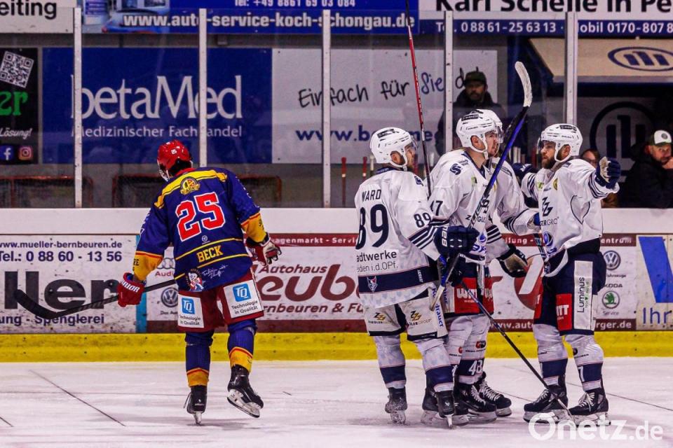 Daniel Bruch (links) erzielte am Freitag beim 5:3-Sieg der Blue Devils in Peiting zwei Tore.