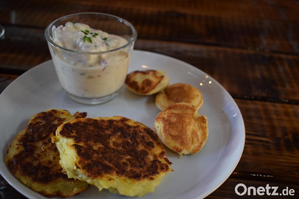 Die erste von vier Stationen ist das "Edelweiss" im "Alten Eichamt". "Viele sagen: ,In Weiden is schöi'", berichtet Erl, "aber kaum jemand erkennt, dass das an den baulichen Renaissance-Elementen liegt." Ein besonders gutes Beispiel sei etwa das "Alte Eichamt". Das "Edelweiss"-Team serviert Rösti mit holländischen Kartoffel-Poffertjes (Gebäck, ähnlich wie Pfannkuchen) und Kartoffel-Dip.