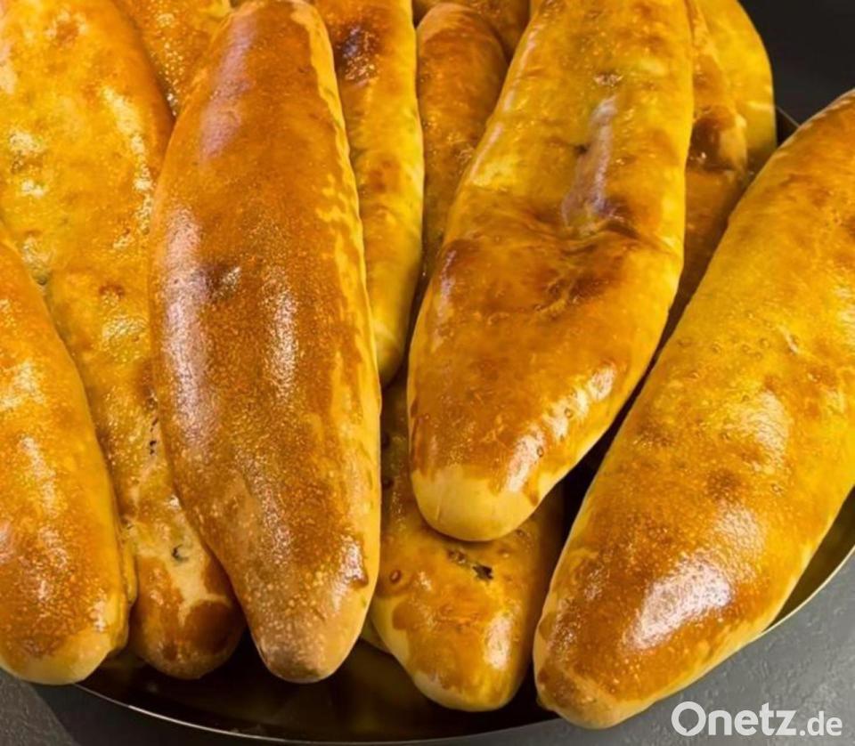 Aus den gleichen Zutaten lässt sich auch eine geschlossene Pide herstellen. Dazu den Teig komplett über die Füllung jeder Pide schlagen, am Rand etwas festdrücken und auf der Oberseite mit dem verquirlten Ei bestreichen.
