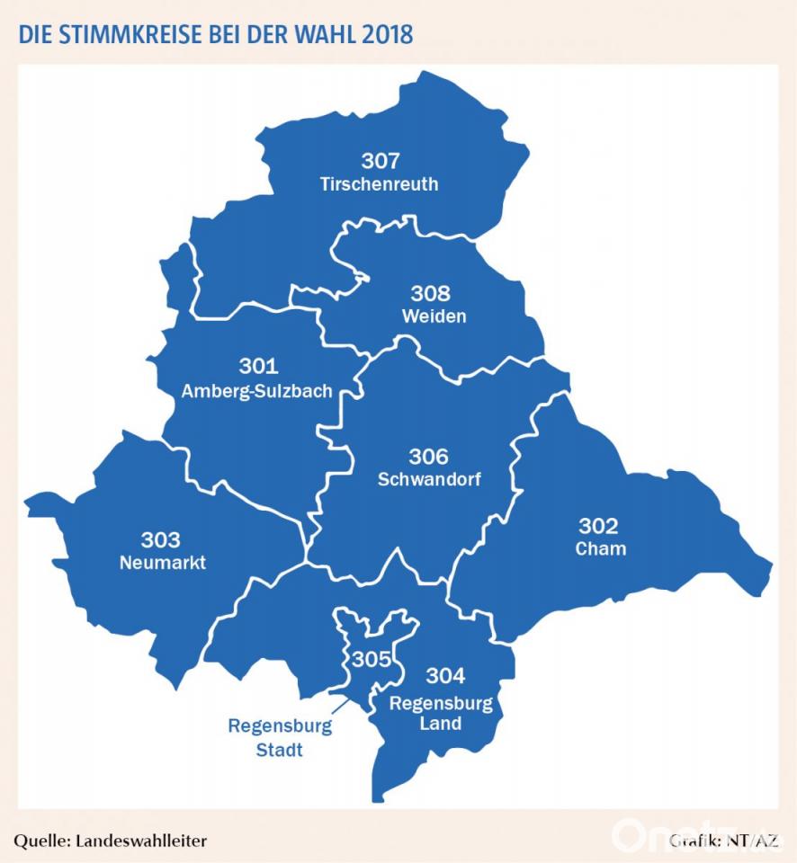 Noch bevor die Koalitionsverhandlungen beginnen, steht fest: Zur Landtagswahl 2023 wird sich in der Oberpfalz wohl die Einteilung der Stimmkreise deutlich ändern. Grund ist die schrumpfende Bevölkerungszahl im Norden und der Zuzug im Süden. Schon vor der Wahl 2018 war die Einteilung der Stimmkreise dem zulässigen Grenzwerte nahe.