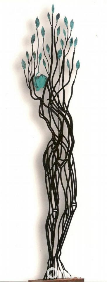 Zusammen mit der Künstlerin fahre ich nach Haunritz, einem Ortsteil von Weigendorf. Am Högenbach neben der Kneippanlage steht die Stahlskulptur "Daphne". Sie sei eine der besten und überzeugendsten Arbeiten von Nora Matocza, so Gerhard Falkner. In die Flussnymphe Daphne verliebte sich der Überlieferung nach der Gott Apollon und war so lange hinter ihr her, bis sie sich mit Hilfe ihres Vaters, des thessalischen Flussgottes Peneios, in einen Lorbeerbaum verwandelte, um seinen Nachstellungen zu entgehen.