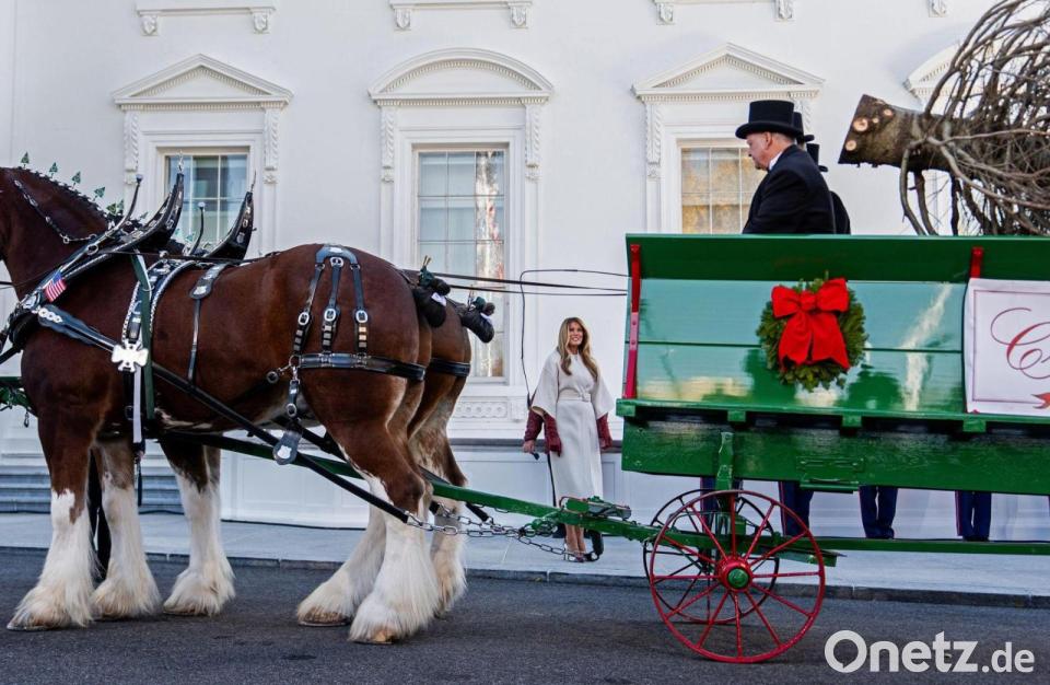 Das Weiße Haus ist in Festtagsstimmung. First Lady Melania Trump nahm in einer kleinen Zeremonie den offiziellen Weihnachtsbaum in Empfang. Der Baum wurde von einer Pferdekutsche auf das Gelände des Weißen Hauses gebracht. Melania umrundete die Kutsche, in einen weißen Mantel gekleidet und mit langen roten Handschuhen. „Das ist ein schöner Weihnachtsbaum“, sagte sie. Der Weihnachtsbaum wird im sogenannten Blauen Raum im Weißen Haus aufgestellt.