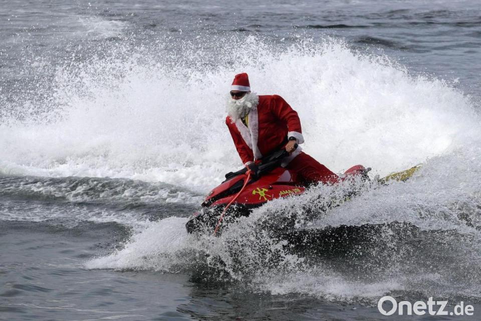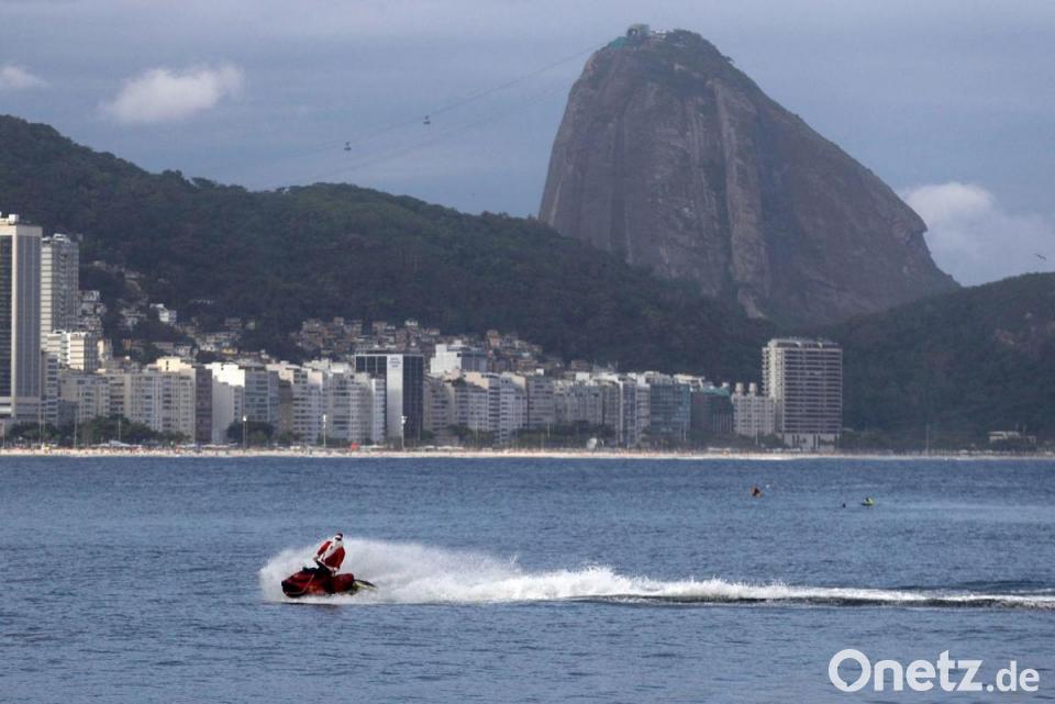 Wie gut, wenn der Nikolaus auch Rettungsschwimmer ist: Bei einer Weihnachtsaktion in Rio de Janeiro musste ein als Santa Claus verkleideter Feuerwehrmann mehrere in Not geratene Badegäste retten.
