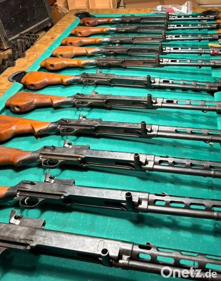 Der nun entdeckte Geheimraum mit 29 Maschinengewehren und drei Panzerbüchsen befinde hinter einer weiteren Vitrine im Keller, hieß es. Die umfangreichen Durchsuchungsmaßnahmen in dem Fall dauerten an.