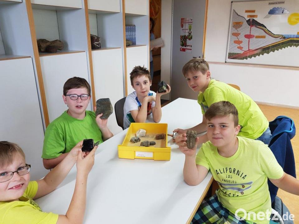 Kurz nach 8 Uhr fuhren die Schüler gemeinsam mit ihrer Klassenlehrerin Frau Weber mit dem Bus zum Geozentrum an der KTB. Möglich gemacht hatte diese Exkursion das Bayernwerk als Projektpartner von „Zeitung macht Schule“. Zunächst folgten die Fünftklässler der Biologin Andrea Mack in den Unterrichtsraum im Untergeschoss. Dort war alles auf das Thema „Gestein“ ausgerichtet. In einer kleinen Erzählung erwähnte Mack alle Gesteinsarten, von denen die Schüler auch einige selbst nennen konnten. Neben den Sedimentgesteinen, also Gestein, das durch Ablagerungen entsteht, unterscheidet man zusätzlich Umwandlungsgesteine und Magmatische Gesteine. Letztere wären beispielsweise Plutonite – entstanden aus Magma, die in der Erdkruste stecken blieb – und Vulkanite. Sie entstanden aus Magma, das aus der Erdkruste herausgeflossen ist.