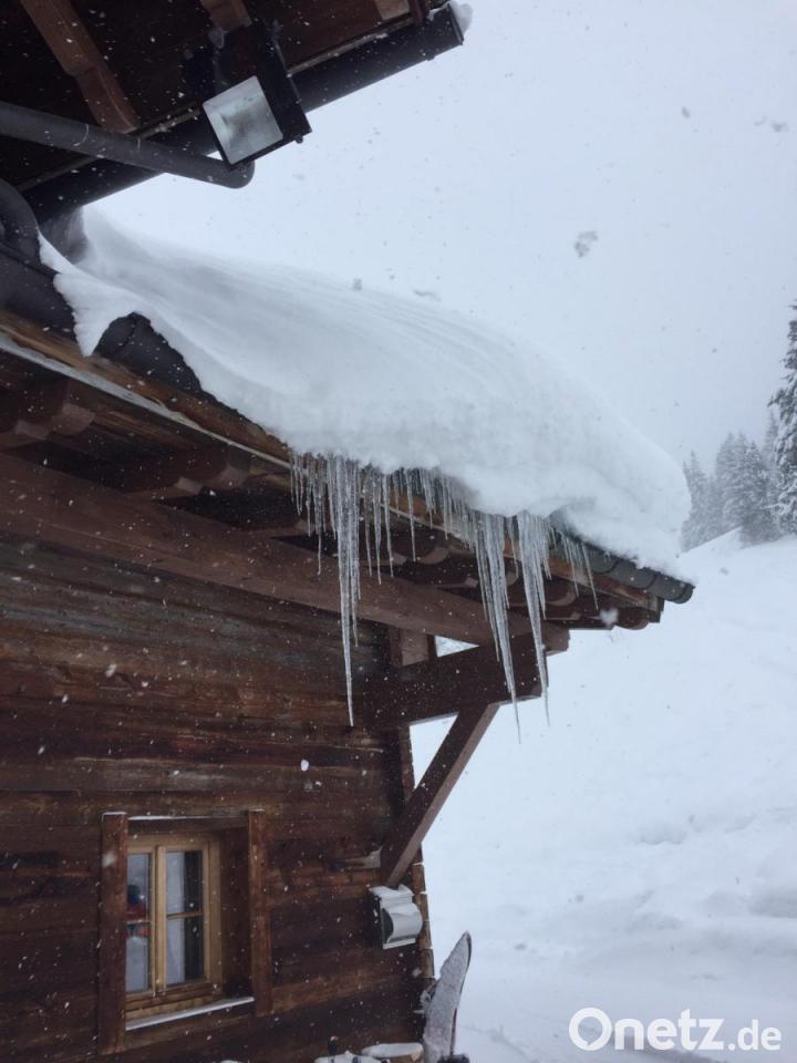 Unglaublich, schreibt Kathleen Völkel, seien die Schneemassen vor, auf und neben der Hochwartalm in Saalbach-Hinterglemm. Auf dem Dach der Mittelstation, direkt neben der Hütte, ist die Schneeschicht höher als die Arbeiter, die den Schnee wegräumen müssen. So viel Schnee, berichtet Völkel, hat selbst der Hüttenwirt noch nicht gesehen – und der ist seit 40 Jahren auf der Alm in den österreichischen Alpen.