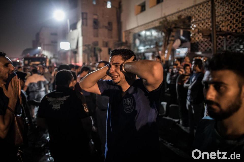 World Press Photo 2020, Kategorie "SPOT NEWS - THIRD PRIZE, STORIES": Männer reagieren nach der Explosion in der Nähe des Krebsforschungsinstituts. Mindestens 20 Menschen starben und mindestens 47 weitere wurden bei dem Terroranschlag verletzt, den die ägyptische Regierung der islamistischen Hasm-Bewegung vorwirft.