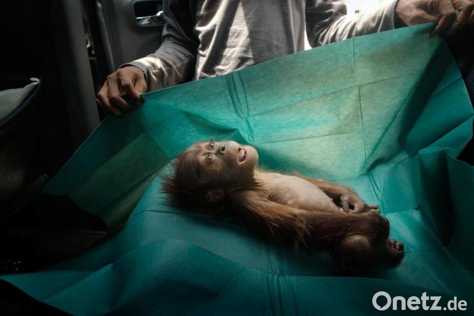 World Press Photo 2020, Kategorie "NATURE - FIRST PRIZE, SINGLES": Der Körper eines einmonatigen Orang-Utans liegt auf dem Operationstuch eines Rettungsteams auf Sumatra. Das Tier starb kurz nachdem es mit der verletzten Mutter auf einer Palmölplantage gefunden wurde (Titel: "Final Farewell").