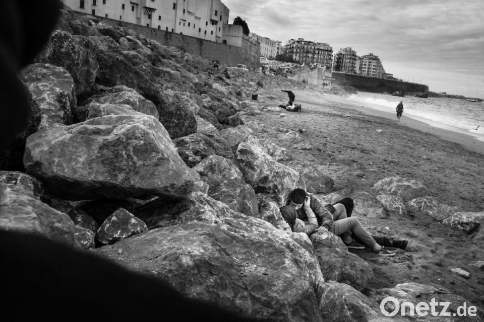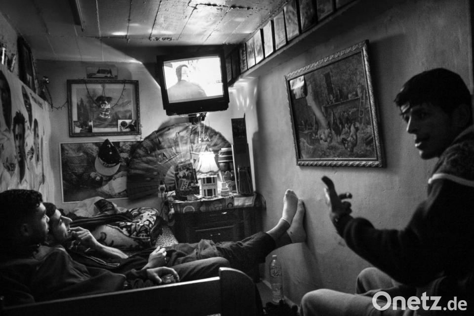 WORLD PRESS PHOTO STORY OF THE YEAR: Freunde entspannen sich und sehen in ihrem Diki, einem privaten Raum, den sie in einem umgebauten Lagerraum in Bab el-Oued geschaffen haben. Die Serie «Kho, die Entstehung einer Revolte» über die Unruhen in Algerien des französischen Fotografen Romain Laurendeau ist "Beste World Press Photo-Story des Jahres.