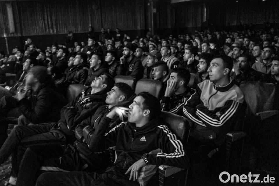 WORLD PRESS PHOTO STORY OF THE YEAR: Jugendliche sehen ein Fußballspiel, das im Kino Olympia gezeigt wird. Das Kino überträgt mehrmals wöchentlich europäische Spiele. Die Serie «Kho, die Entstehung einer Revolte» über die Unruhen in Algerien des französischen Fotografen Romain Laurendeau ist "Beste World Press Photo-Story des Jahres.