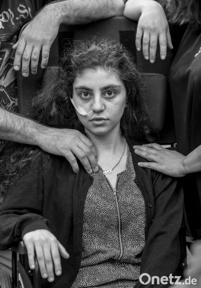 World Press Photo 2020, Kategorie "PORTRAITS - FIRST PRIZE, SINGLES": Ewa, ein 15-jähriges armenisches Mädchen, das kürzlich aus einem durch das Resignationssyndrom verursachten katatonischen Zustand erwacht ist, sitzt in einem Flüchtlingsaufnahmezentrum in einem Rollstuhl, flankiert von ihren Eltern (Titel "Awakening").