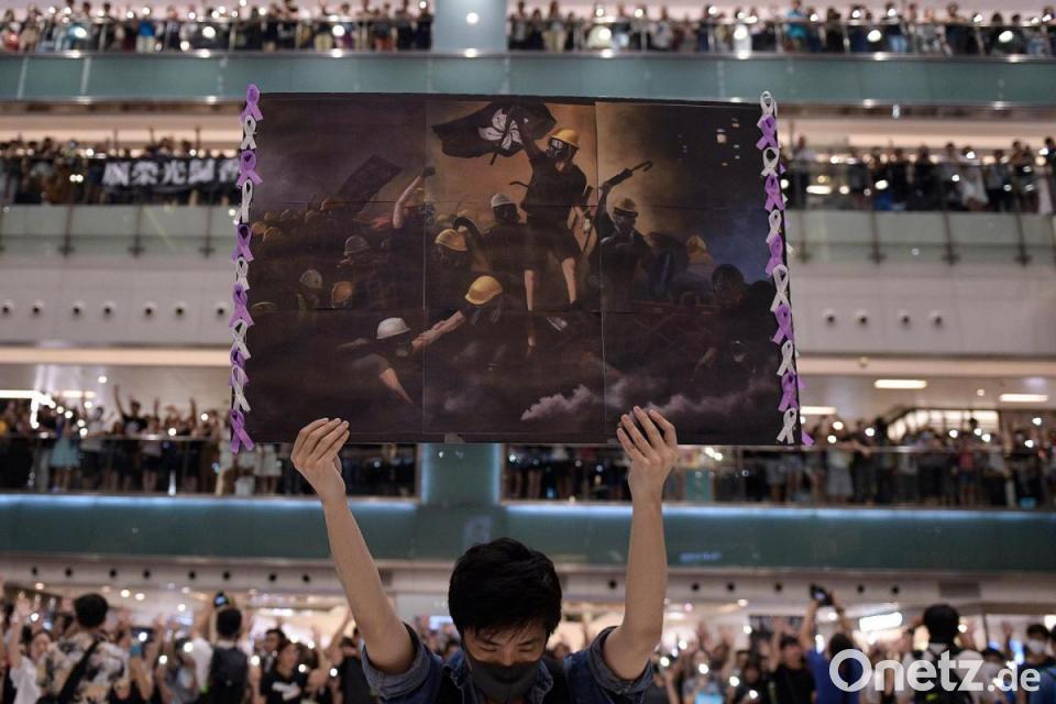 World Press Photo 2020, Kategorie "GENERAL NEWS - FIRST PRIZE, STORIES" (daraus das Motiv): Ein Mann hält ein Plakat in der Hand, während sich die Menschen zum Singen von "Glory to Hong Kong" versammelt haben - ein Protestlied, das in der Stadt als inoffizielle Hymne an Popularität gewonnen hat (Titel "Hong Kong Unrest").
