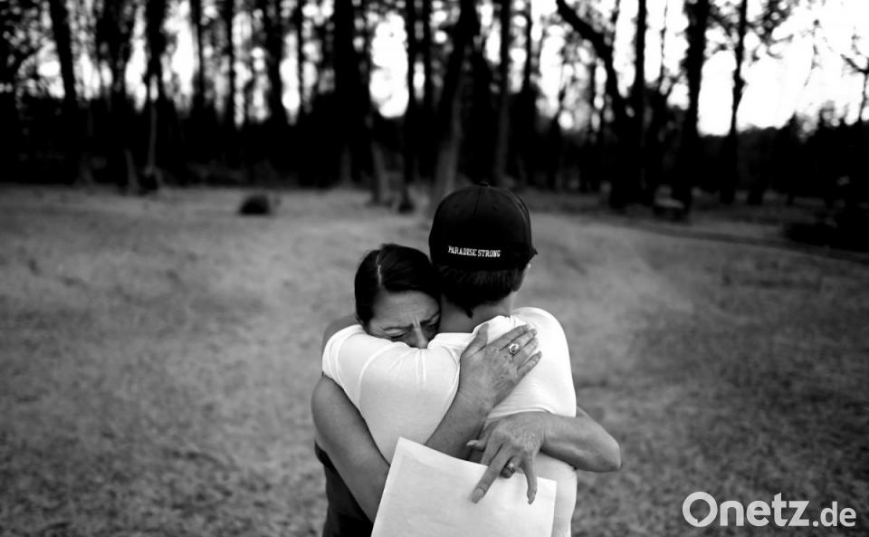 World Press Photo 2020, Kategorie "SPORTS - FIRST PRIZE, STORIES" - daraus das Motiv: Emmie Morgan und ihr Sohn Setson, ein Paradise Bobcats Running Back, trösten sich gegenseitig, während sie den Ort besuchen, an dem einst ihr Zuhause stand (Titel: "Rise from the Ashes").
