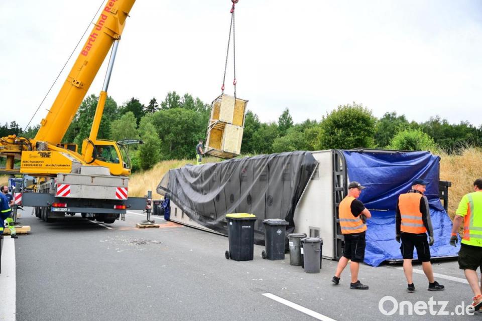 Bei der Bergung waren demnach auch Feuerwehren, das Technische Hilfswerk und Mitarbeiter der Autobahnmeisterei im Einsatz. Auf der Autobahn sei in Folge des Unfalls wohl bis zum Nachmittag mit Staus und Verzögerungen zu rechnen.