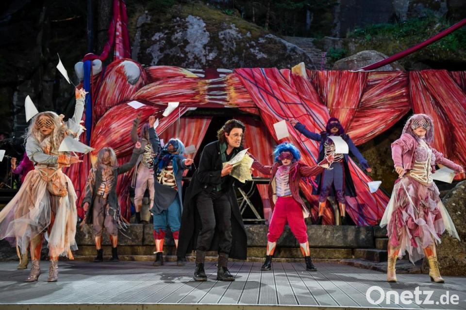 Die Uraufführung des Musicals von Kevin Schroeder und Marian Lux zur Eröffnung der Abendspielzeit bei den Luisenburg-Festspielen am Freitag wurde zu einer Sternstunde des modernen deutschsprachigen Musicals. „Doch die Wahrheit ist, ich bin das Monster“, tönt es gleich zu Beginn aus dem Mund von Viktor Frankenstein, der auf dem obersten Felsen der Naturbühne steht. Gut zwei Stunden lang werden die Zuschauer mitgenommen ins Leben und Wirken Frankensteins, der gemeinsam mit seinem Freund Henry Clerval zum Studium in Ingolstadt angekommen ist. Die Macher des Musicals – Autor Schroeder, Komponist Lux, Regisseur Christoph Drewitz, Choreograph Bart de Clercq sowie Kostüm- und Bühnenbildner Adam Nee – haben in ihrer gemeinsamen Arbeit vor Ort eine Inszenierung „geboren“, die sich vor keiner Stage-Entertainment-Produktion der großen Häuser der Republik verstecken muss.