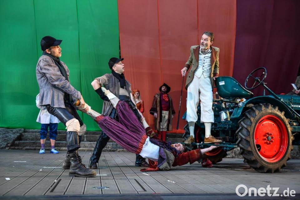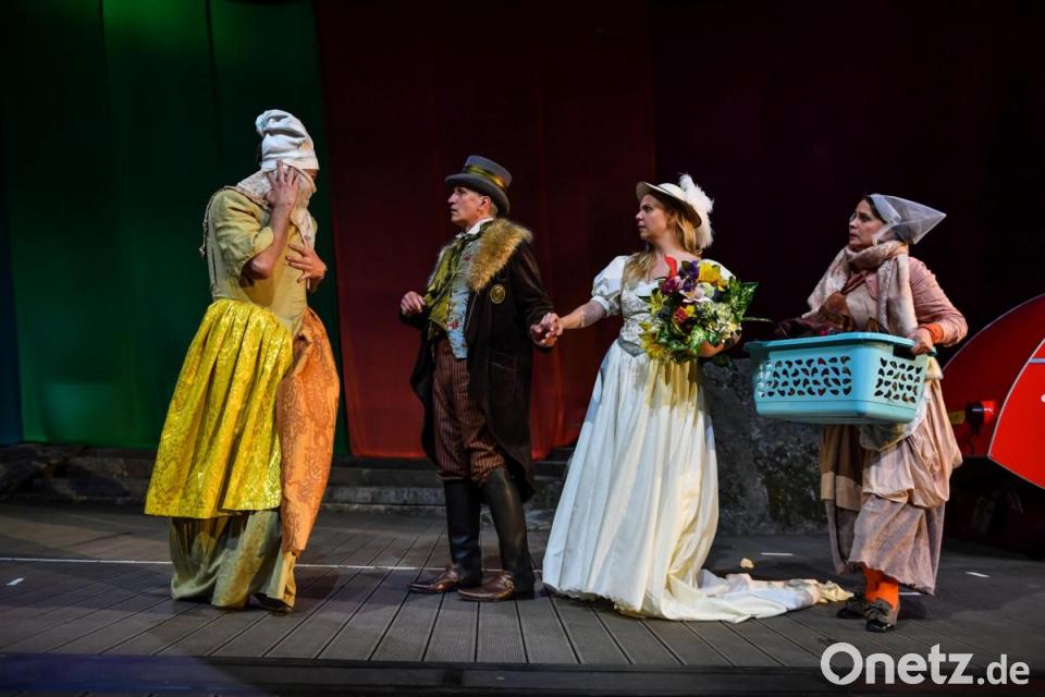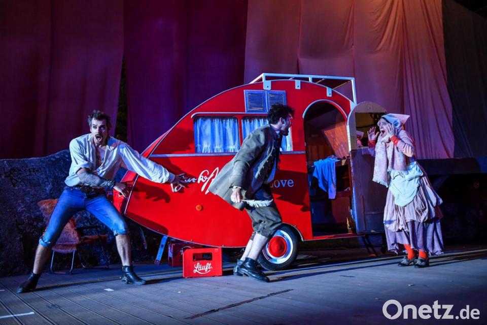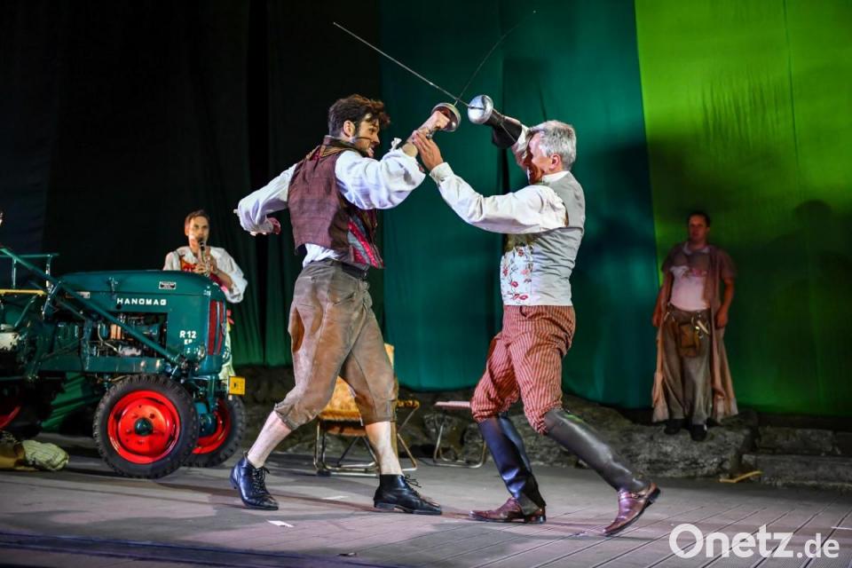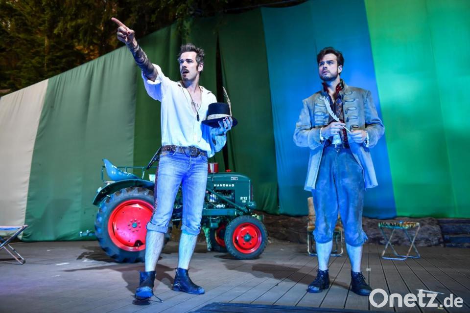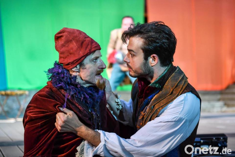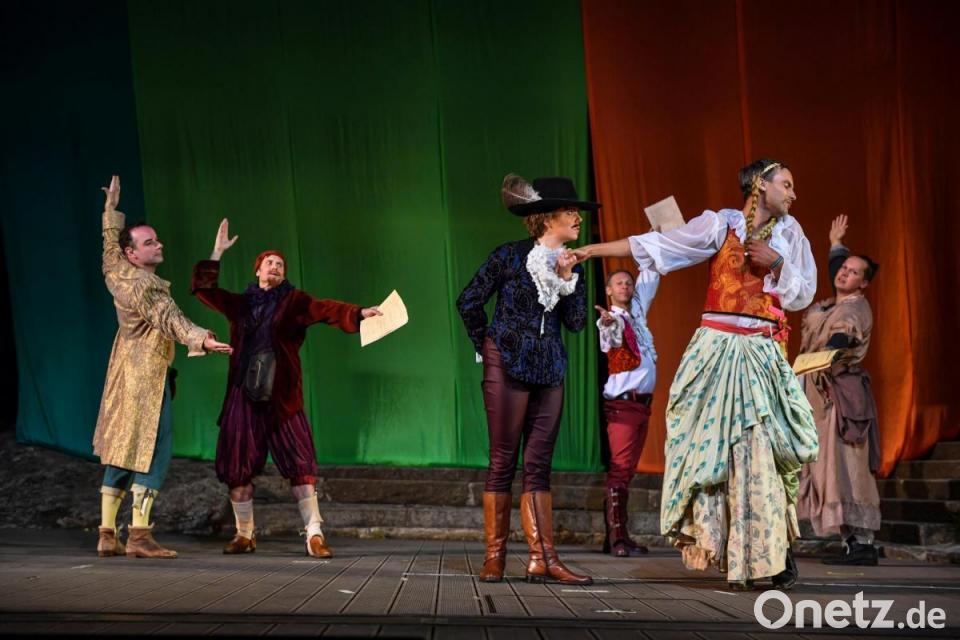 "Shakespeare in Love" beginnt mit einem Monolog, der auch den Theaterfreunden bei der verregneten Premiere der Liebesgeschichte bei den Luisenburg-Festspielen verdächtig bekannt vorkommt. Nur dass die "Feindschaft zweier Häuser" in diesem Fall nicht Adelige in Verona meint, sondern die Theatermacher Philip Henslowe (Paul Kaiser) und Richard Burbage (Martin Brunnemann), die sich bekriegen. Um Stücke und Geld. Damit ist der Boden der fiktiven Entstehung von Shakespeares berühmtestem Drama "Romeo und Julia" bereitet.