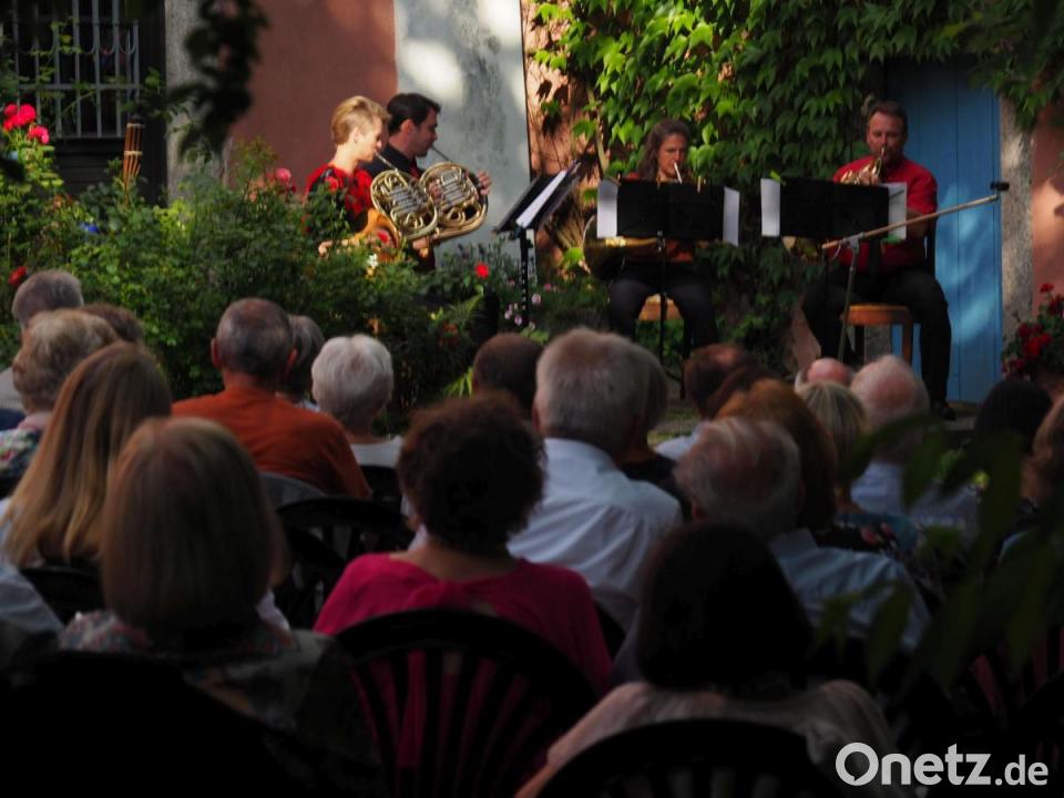 Mit einer kleinen Jagdfantasie von Heinz Liebert mit dem Volkslied "Das Waldhorn" als Zentrum konzipiert und F.ranz Schuberts Volkslied "Der Lindenbaum" stimmt das Quartett die Zuhörer im von der Sonne wundervoll ausgeleuchteten Park auf ein zwar anspruchsvolles, jedoch leicht "bekömmliches" Konzert ein. Eigentlich bräuchte man ob der stimmungsvoll intonierten Lieder "Ännchen von Tharau" (Friedrich Silcher) und Felix Mendelssohn Bartholdy "O Täler weit, o Höhen" aus der Heimat nicht zu einer Weltreise aufbrechen und "Abschied vom Walde" nehmen.